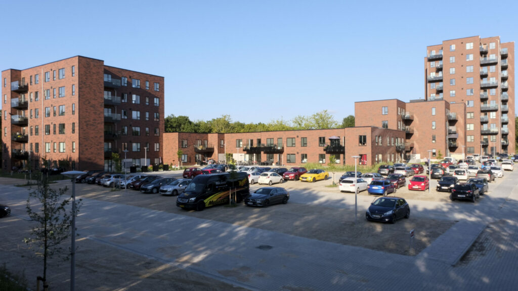 For Domea og Boligselskabet Alliken har Adsbøll Entreprise opført 96 almene boliger i fem blokke med to til ti etager.