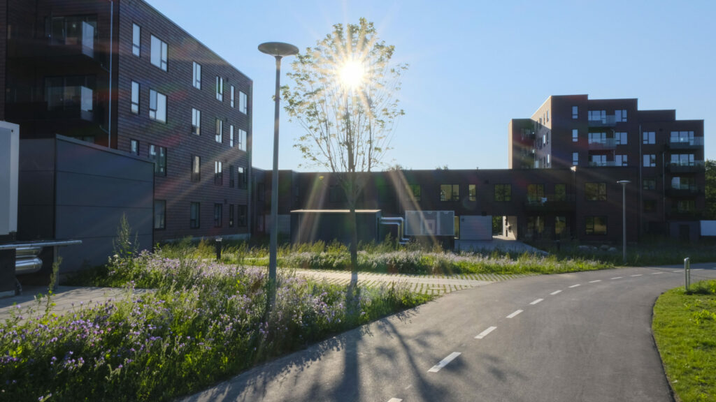 Der er installeret Co2-fri varmepumper, som hjælper med at nedbringe boligernes energiforbrug.