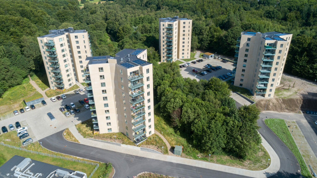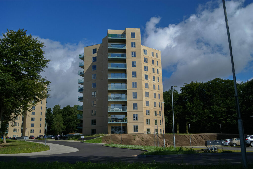 Boligerne er fordelt på fire blokke med hver 10 etager.