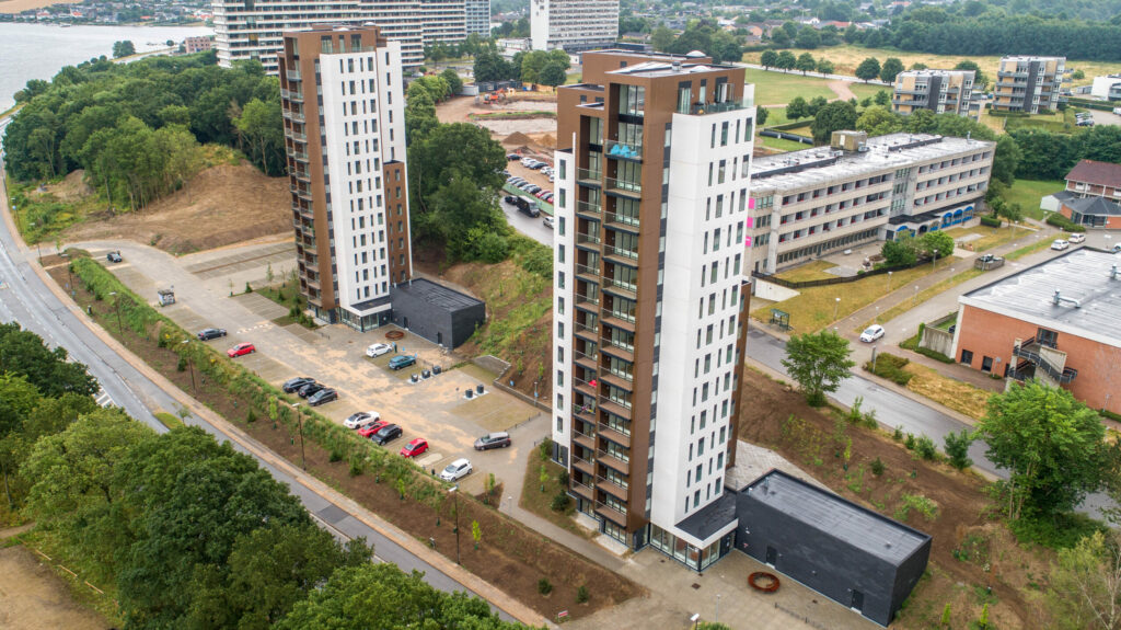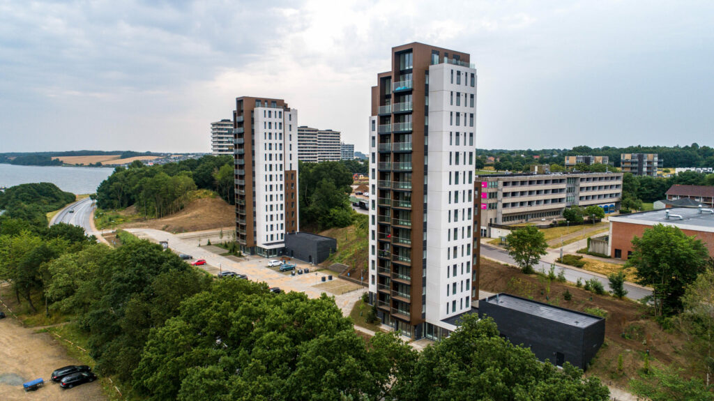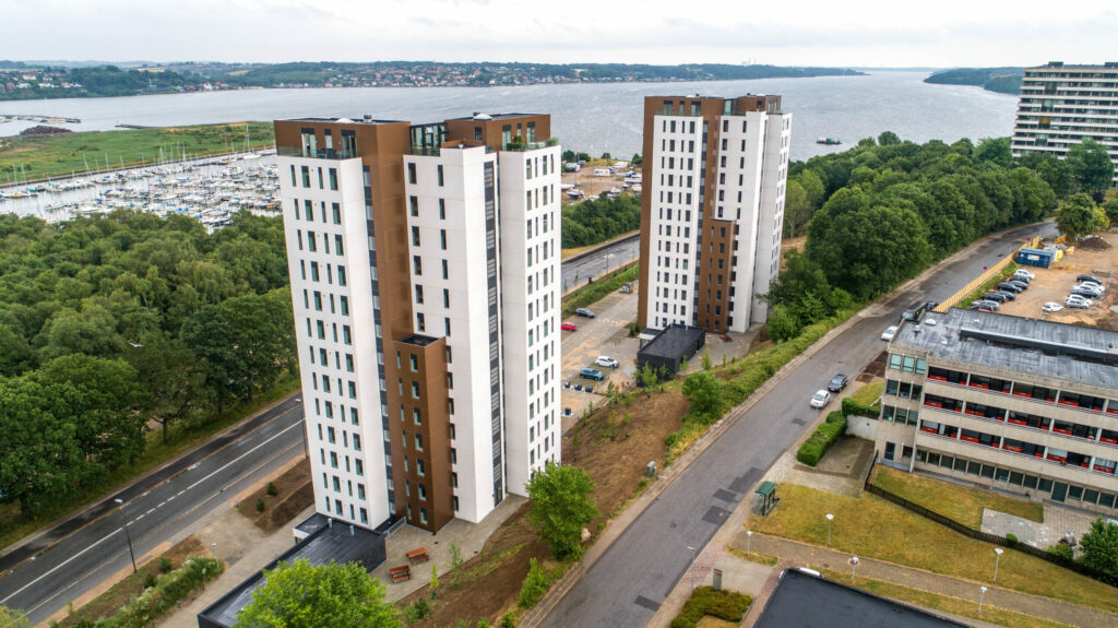 To tårne med 14 etager på Fjordbrynet i Kolding
