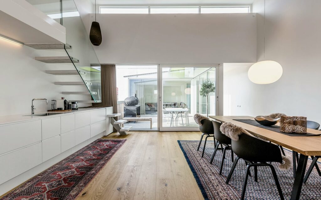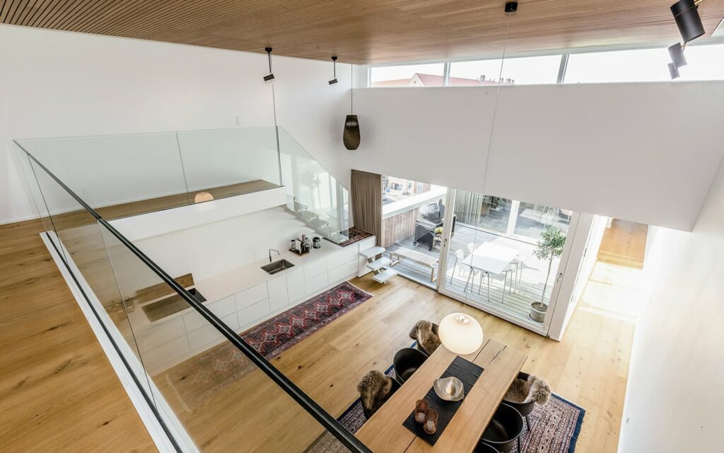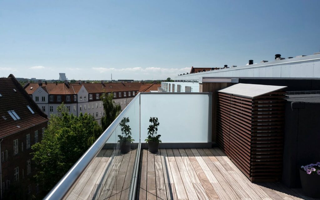 Ejerlejlighederne er udført i eksklusiv New Yorker-penthousestil, med bl.a. en glasrude som værelsesvæg, atriumgård, walk-in closet og hems med udgang til sydvendt tagterrasse.