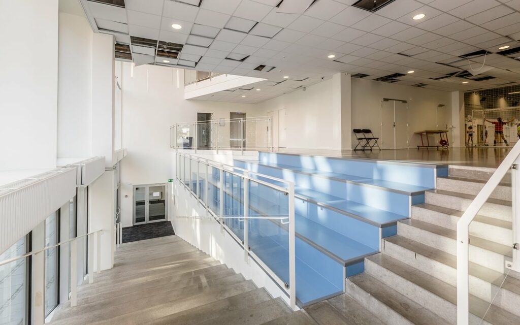 Imponerende og anmelderrost byggeri med idrætshal, butik og 12 ejerlejligheder